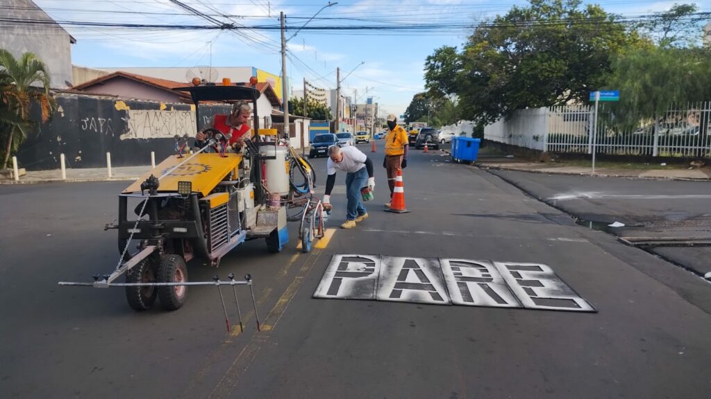 Ruas Orlando Pavan e Armelinda Espúrio da Silva recebem reforço na sinalização de solo